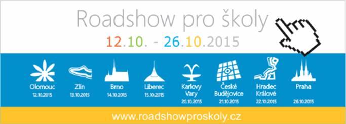 8 mest, více jak 1000 úcastníku, 24 sálu, 1075 kilometru, 56 hodin informací a 11 recníku. Tak by se letos dala charakterizovat roadshow pro školy. Bude se jednat o výjimecnou akci, na které nesmíte chybet. At jste reditel, ucitel nebo správce IT, naleznete zde plno zajímavých prednášek a workshopu, které Vás posunou zase o neco dále. A pro každého úcastníka máme pripraveno slušivé tricko a praktický IT dárek. Tak neváhejte a zaregistrujte se ješte dnes na www.roadshowproskoly.cz
