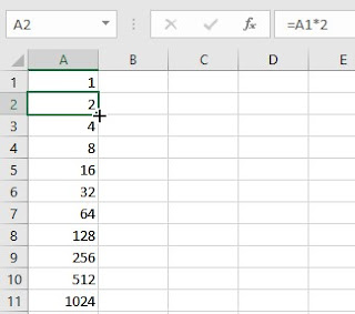 V případě, že budete potřebovat složitější posloupnost, je vhodné využít vzorec. Dejme tomu, že ve sloupci A chcete mít první číslo 1 a každé další 2x větší než předchozí. Pokud byste napsali první dvě čísla posloupnosti jako v předchozím tipu, jak by Excel poznal, zda další číslo má být posloupnost zvětšená o +1 nebo posloupnost, která je 2x větší než předchozí číslo? Obě dvě podmínky totiž čísla 1 a 2 splňují. A bohužel ani vepsání prvních tří čísel z posloupnosti (1,2,4) Excelu moc nepomůže. Proto je vhodné využít vzorec, který bude v buňce A2 (ve které je již vepsané číslo 1) vypadat takto: =A1*2. Pak stačí označit pouze buňku A2 (nikoliv celou posloupnost, protože v tu chvíli se nejedná již o protažení posloupnosti, ale kopírování vzorce) a tažením za pravý dolní roh vytvořit posloupnost dle vlastních potřeb, přičemž každé další číslo posloupnosti bude 2x větší než předchozí.