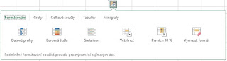 Tato novinka v Excelu 2016 je určena pro efektivnější práci s daty. Stačí označit tabulku (buňky) do bloku a ihned se v jejím dolním rohu objeví tlačítko Rychlá analýza. Po klepnutí na něj máte okamžitý přístup k rychlým funkcím týkajících se formátování, grafů, podmíněného formátování, součtů, minigrafů apod.