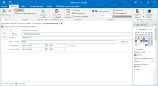 V Outlooku je možné kromě standardního zápisu události vytvořit také žádost o schůzku. Jedná se o jakési spojení emailu a události v kalendáři a funguje tak, že pošlete někomu žádost o schůzku, v níž bude určen začátek a konec schůzky, místo a další doplňující informace, a pokud daná osoba návrh schůzky přijme, automaticky se tato událost vloží do jejího i vašeho kalendáře. Tato funkce je opět velice využívána, a to zejména ve firemním prostředí. Stačí, když v Poště na kartě Domů ve skupině Nové kliknete na položku Nové položky a ze zobrazené nabídky vyberete možnost Schůzka. Outlook otevře okno Schůzka, kde zadáte všechny potřebné údaje, návrh na schůzku odešlete a jen čekáte, jak se vyjádří příjemce.
